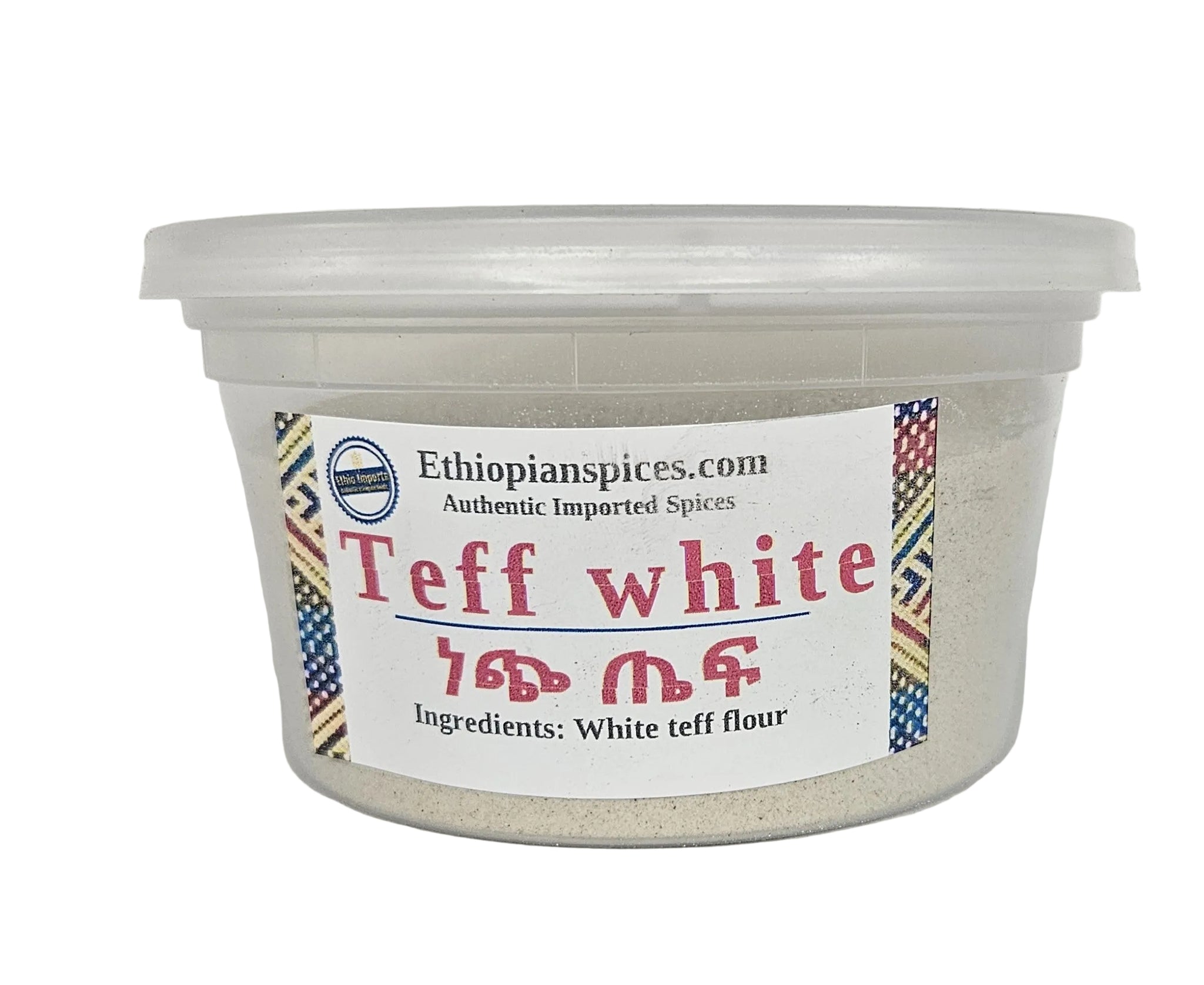 Teff flour (white) is a special Ethiopian cereal grain used to make Injera (Ethiopian flat bread). It is gluten free flour and can be used to bake healthy muffins, pan cakes, tortilla, bread and much more. See our recipes for making Injera bread.